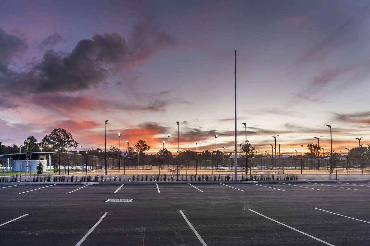 Civil works included extensive earthworks, asphalt car parking, road upgrades, and the construction of 20 tennis courts—comprising both Italian clay and concrete hard surfaces. Additional features included a putt-putt course, outdoor entertainment areas, and installation of new service infrastructure such as water, sewer, electrical, stormwater, and irrigation systems. A major sediment pond and a Floating Treatment Wetland device were also constructed, along with a buried 600kL storage tank.