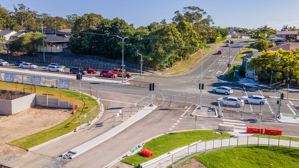 This stage focused on enabling infrastructure, including external roadworks and a signalised intersection upgrade on Napper Road, internal roads, bulk earthworks, stormwater drainage, and services reticulation.
