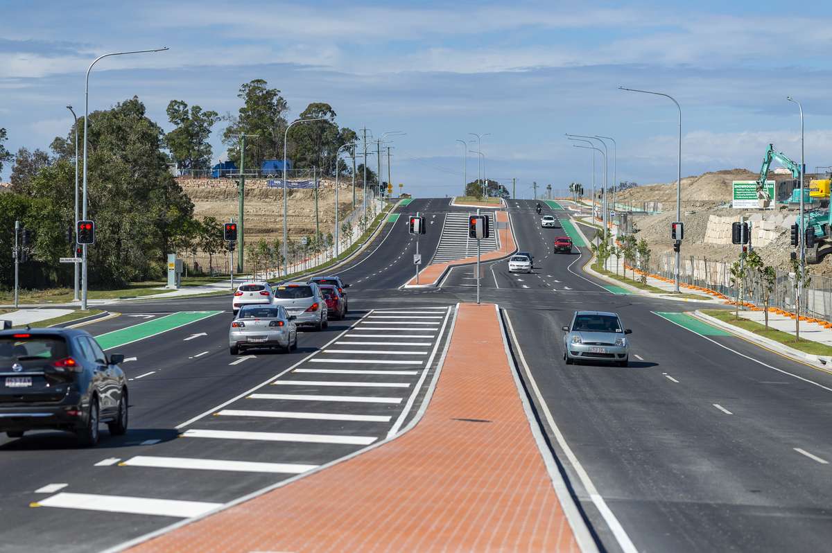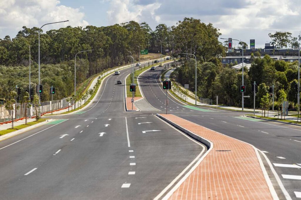 The project included 20,000m³ of earthworks, extensive subgrade treatment, and construction of 20,000m² of new asphalt pavement. Key infrastructure works comprised 1,000 linear metres of stormwater reticulation, 320 metres of sewer reticulation, and 250 metres of water reticulation. Electrical installations spanned the entire length of the duplication, incorporating street lighting, ITS backbone, Energex conduits, and two new signalised intersections. Additional features included 4,000m² of concrete footpaths, 330 metres of kerb, 900m² of stencilled concrete infill, and 10,000m² of landscaping.